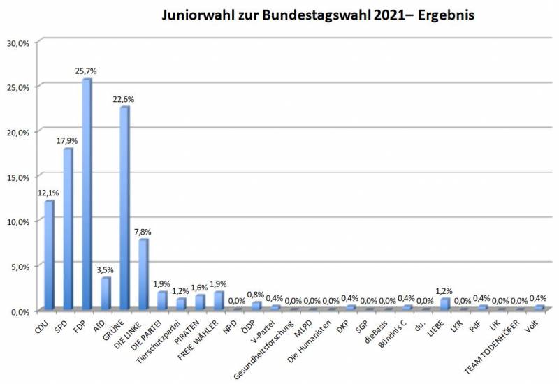 Ergebnis der Juniorwahl zur Bundestagswahl 2021