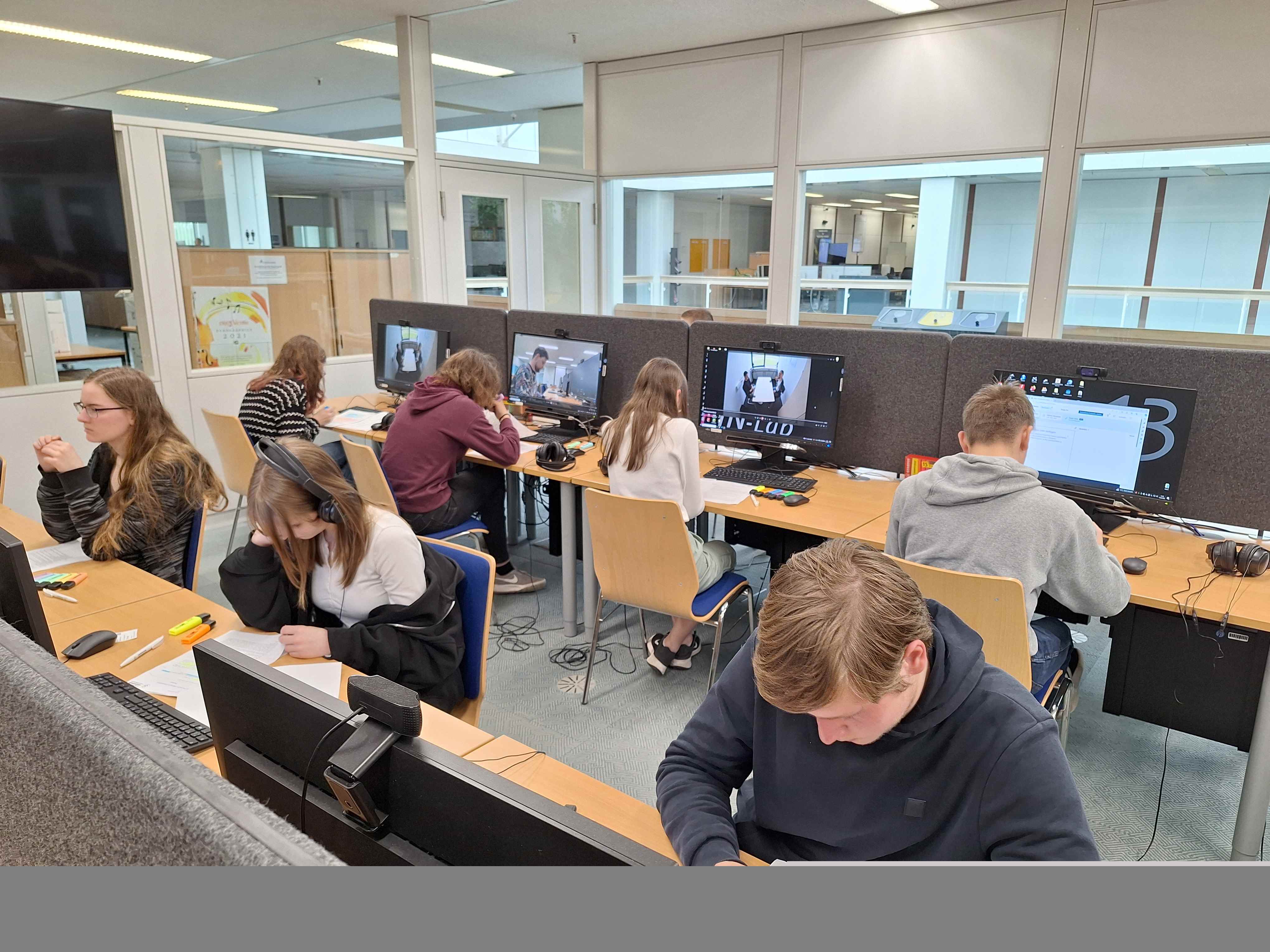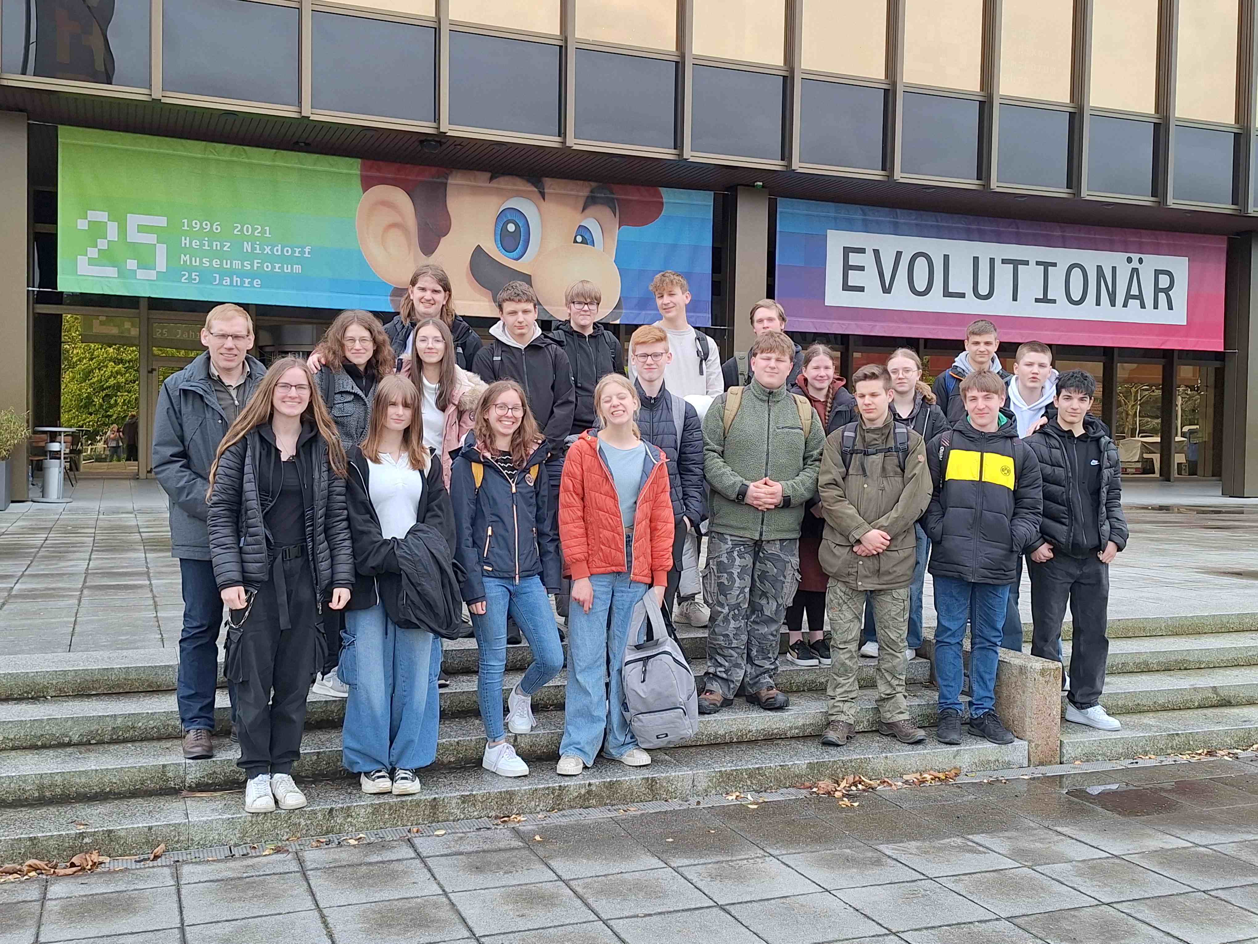 Wie baut ein KI-System einen Sprachwortschatz auf? Wie muss eine authentische Interaktion zwischen Mensch und Maschine ablaufen? Allen diesen Fragen durften die Schülerinnen und Schüler des WP10-Informatikkurses in einem tollen Workshop der Universität Paderborn (Sonderforschungsbereich Hashtag#TRR318) und bei einer interessanten Führung im Heinz-Nixdorf-Forum Paderborn stellen. Ausgehend vom aktuellen Unterrichtsvorhaben zur künstlichen Intelligenz erhielten die Schülerinnen und Schüler sowie die begleitenden Lehrkräfte Frau Meixner und Herr Höltke tiefe Einblicke und praktische Anschauung in die universitäre Forschung zu diesem "brandaktuellen" Thema.