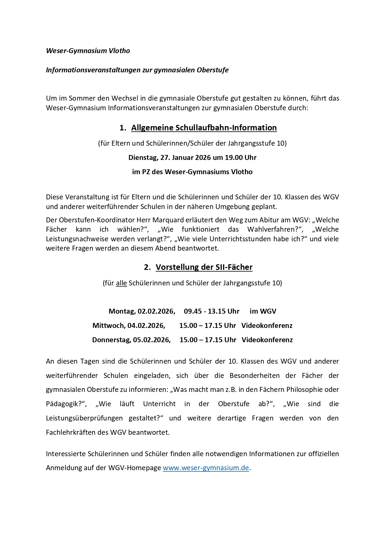 Informationsveranstaltungen zur gymnasialen Oberstufe