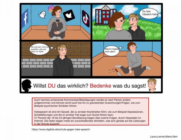 Die Plakate in der Schule sollten zunächst jeden zum Nachdenken anregen. Nun sind auf der Homepage auch weitere Ergebnisse zu sehen: Ein Film und ein Comic.
