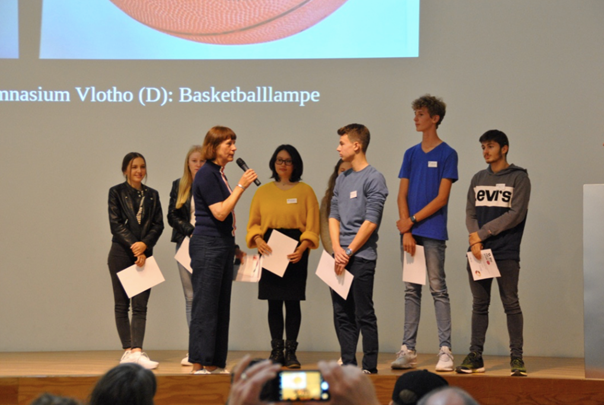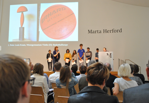 Die Neue Westfälische schreibt dazu: „Jung-Designer aus Vlotho überzeugt mit Basketball-Lampe im Marta“, womit sie den Schüler Louis Kraatz aus der Q1 von unserer Schule meinen, der mit seiner Lampe den 1. Platz beim RecyclingDesignpreis belegt hat. Louis hat im letzten Jahr aus einem ausrangierten Basketball eine Lampe entworfen. Die Designer und die Jury aus Herford waren von seiner innovativen Idee, der kreativen Umsetzung und der farblichen Gestaltung begeistert.