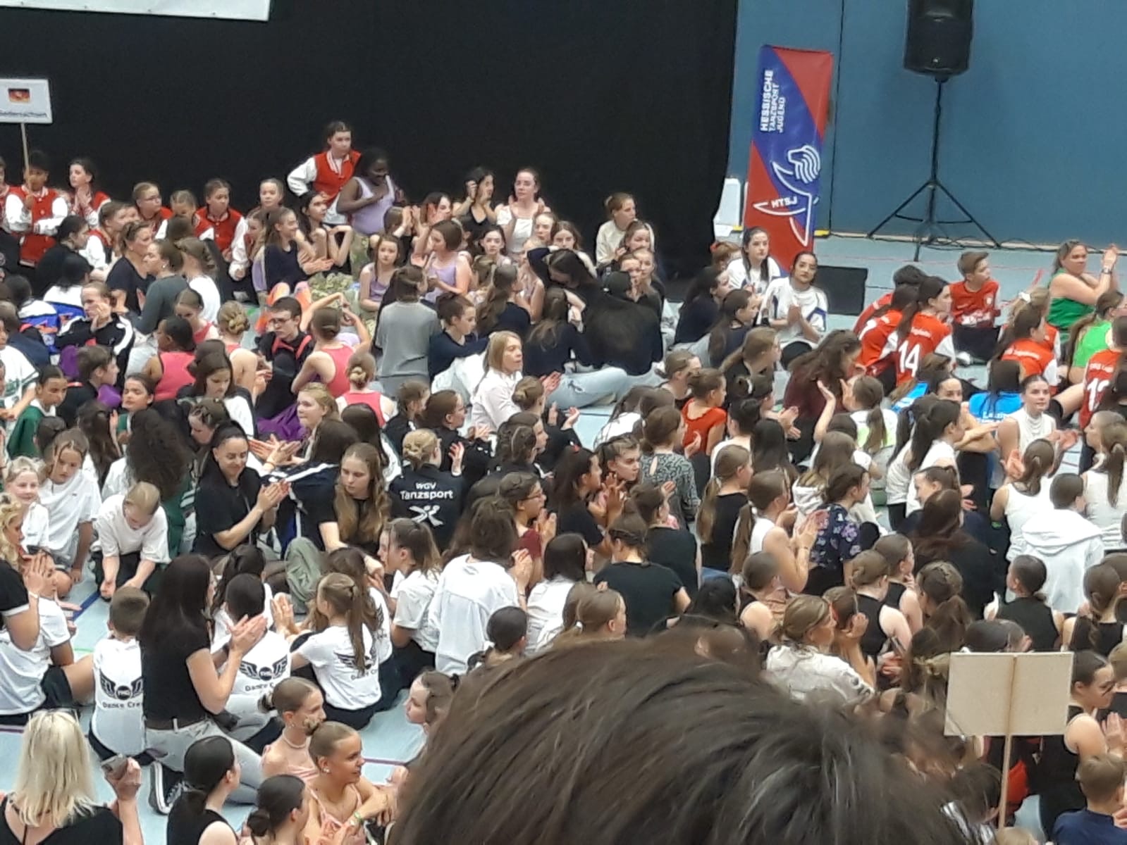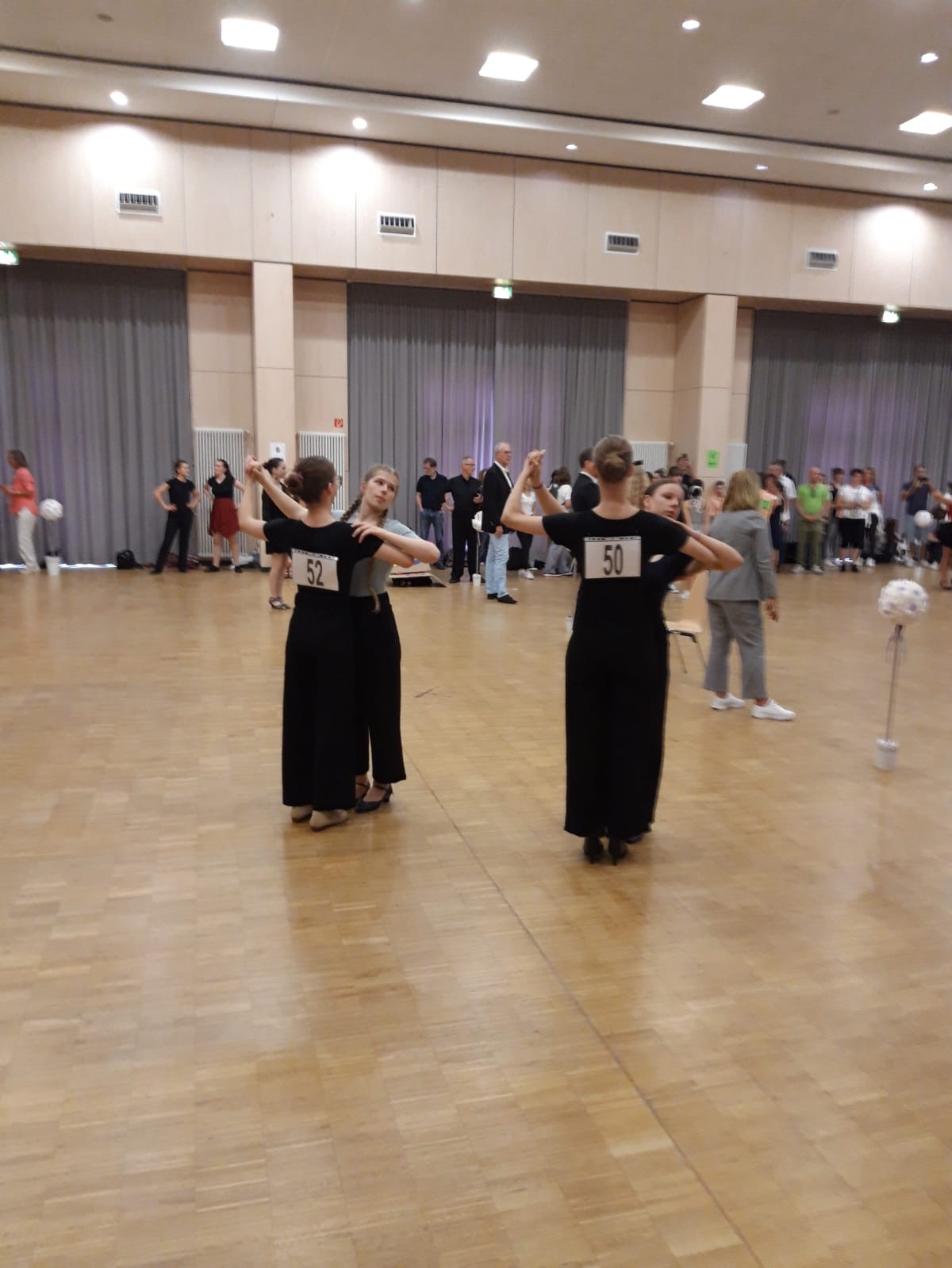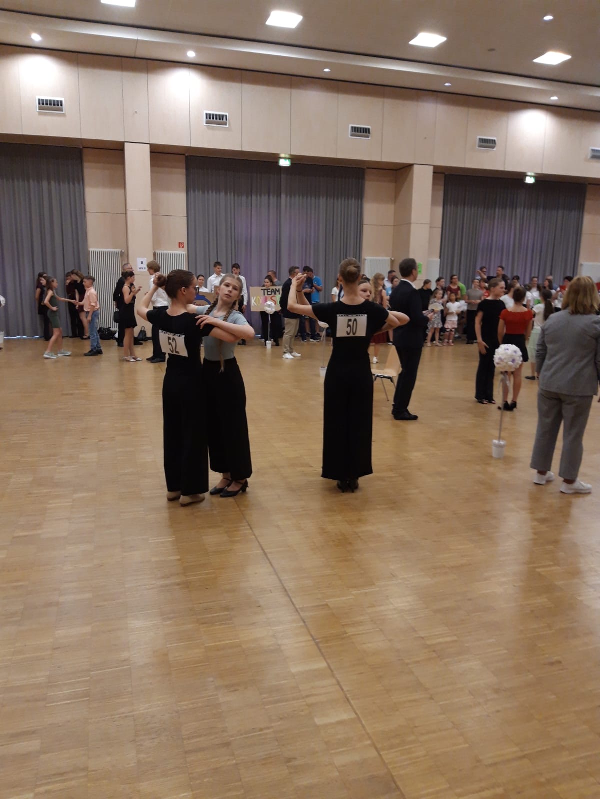 Um 10.00 Uhr standen wir dann auch schon im Bildungs- und Kulturzentrum, wo das Turnier stattfinden sollte. In den Umkleiden, die uns zugeteilt wurden, legten wir unsere Tanzkleidung an, flochten uns gegenseitig die Haare und machten uns zurecht. Währenddessen stiegen Aufregung und Nervosität stetig an.